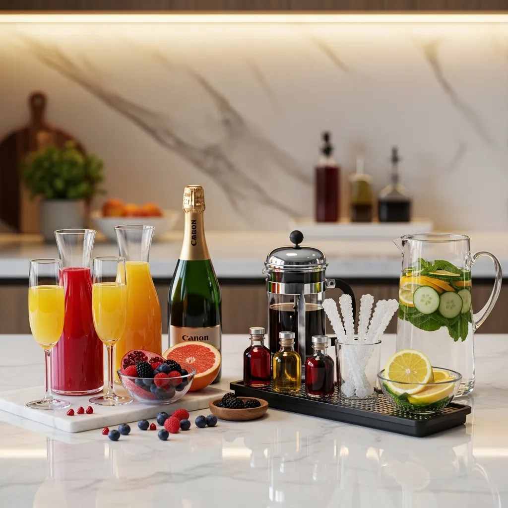 Ever noticed how restaurants make drinks feel special? You need more than just orange juice. Set up a dedicated beverage station that screams effort