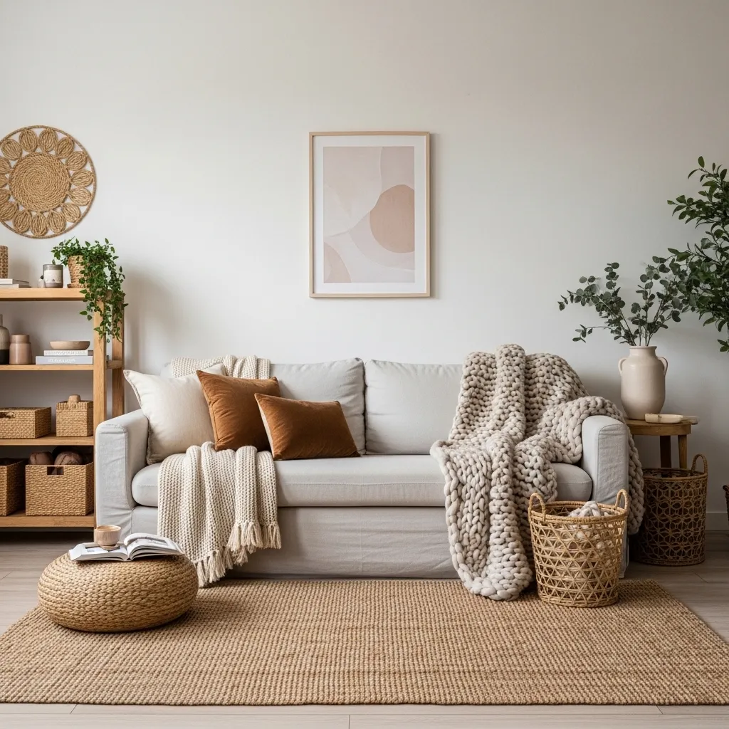 - Introduce natural fibers: A jute rug or rattan baskets add tactile interest.
