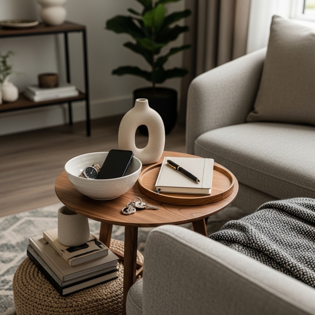• Chic Catch-All: Always include a small, chic bowl or tray specifically for keys, watches, and phones.