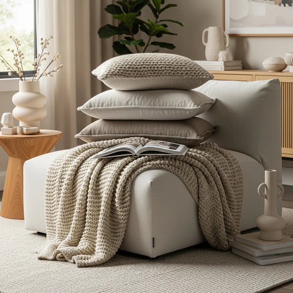 • A Throw is Essential: Drape a high-quality knit or faux-fur blanket over your seating for instant inviting warmth.