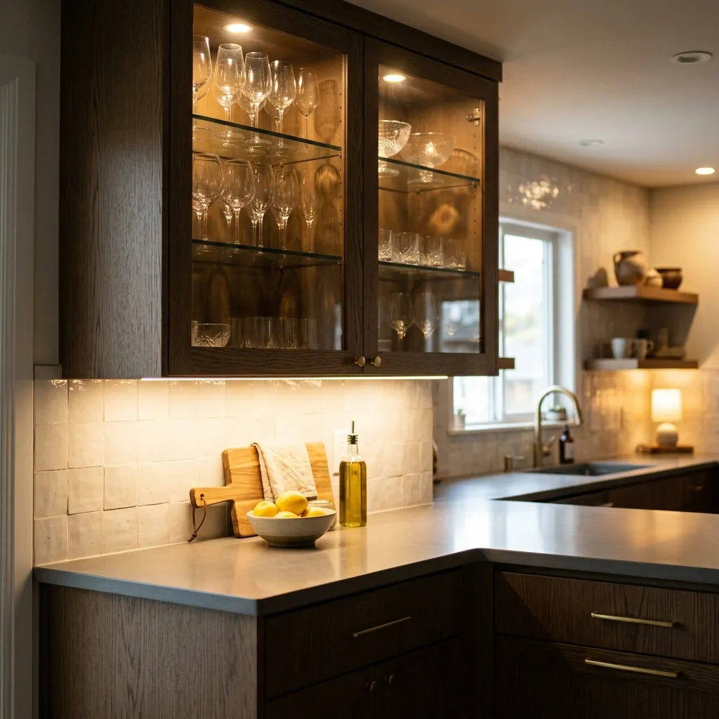 - Add glass cabinet puck lights to showcase your favorite glassware.