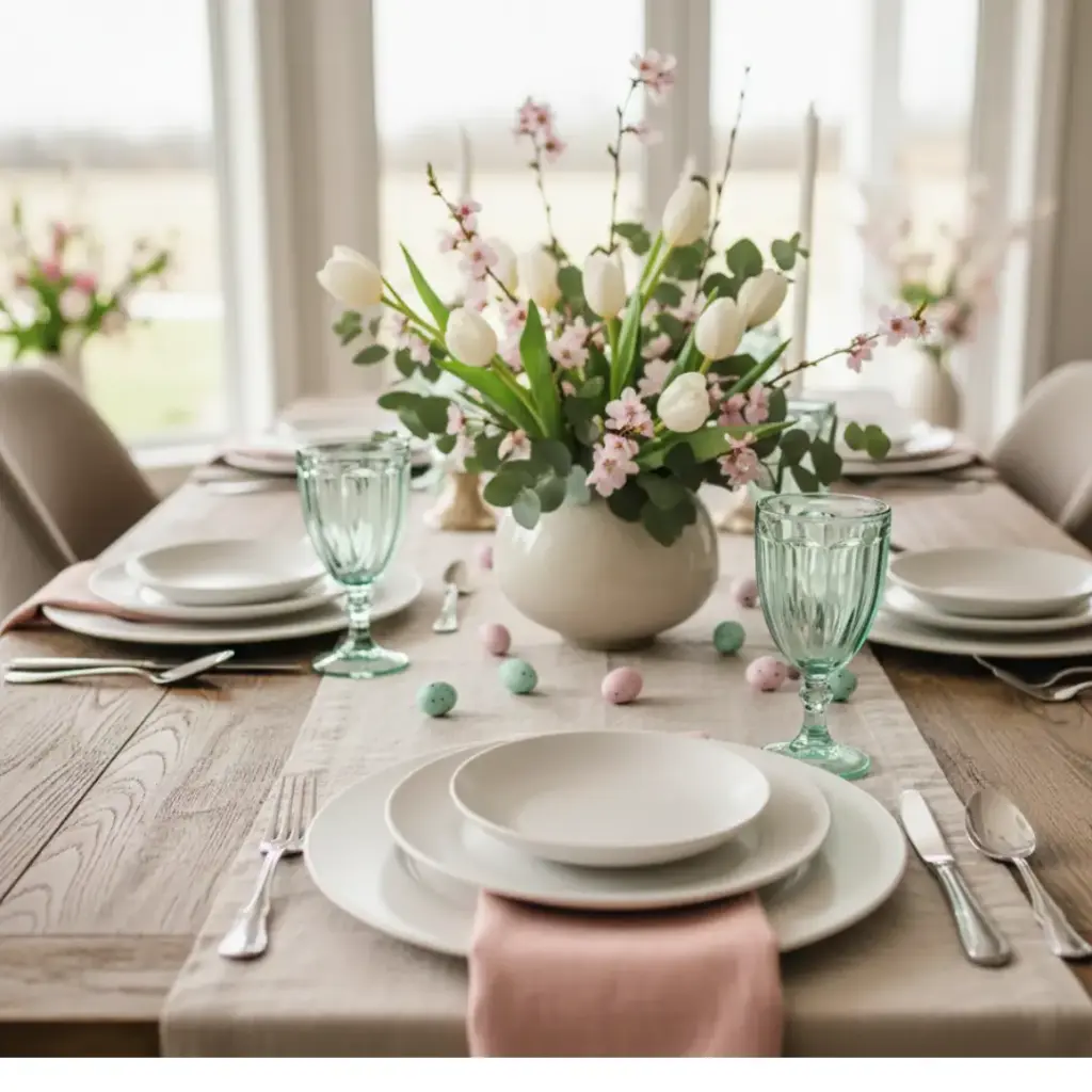 You don’t need giant plastic bunnies ruining your aesthetic. I prefer keeping things incredibly simple. Minimalist decor saves precious time and prevents visual clutter during the meal.