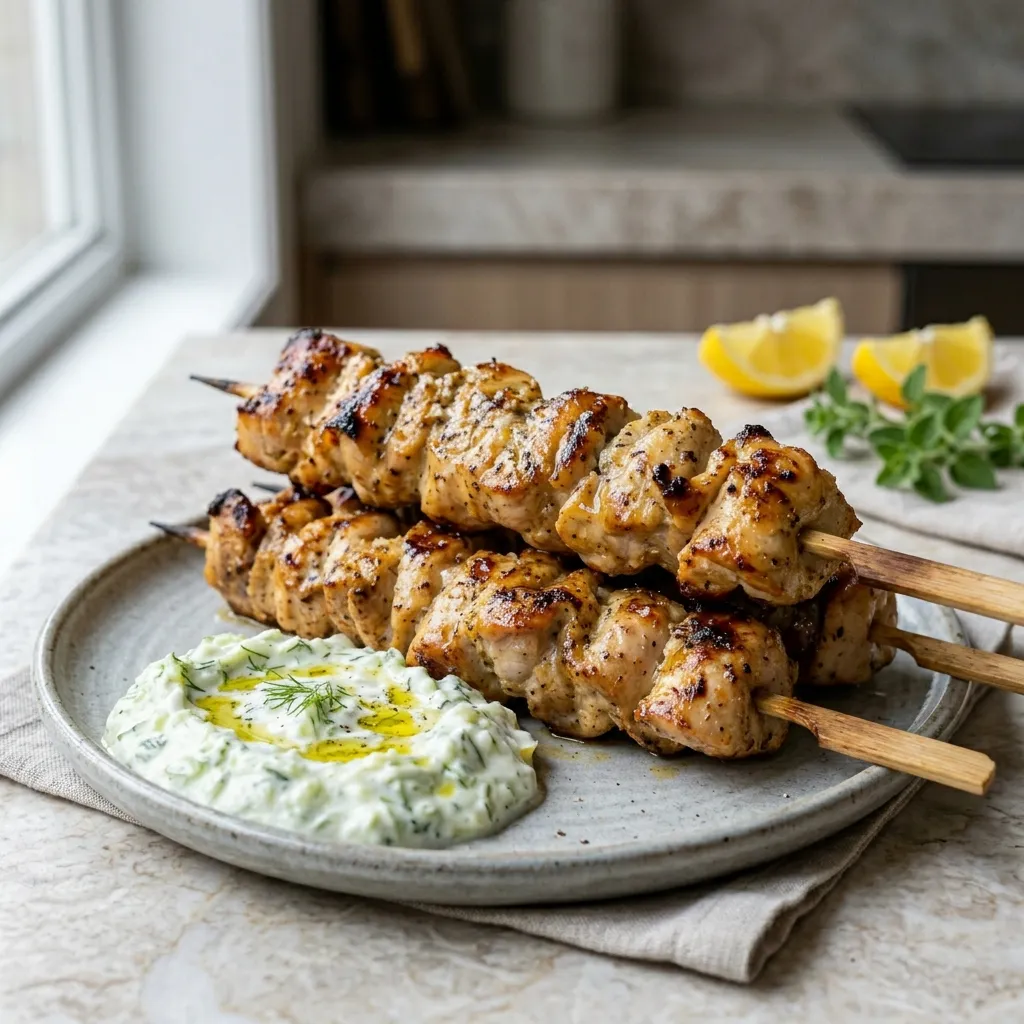 1. Marinate chicken chunks in Greek yogurt, lemon, and oregano for 15 minutes.