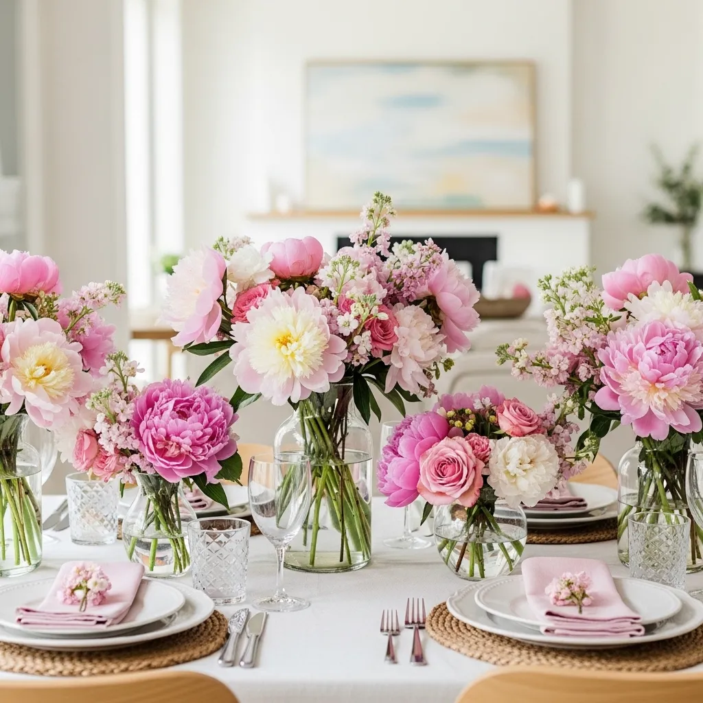 I absolutely adore a table drowning in fresh, beautiful blooms. Mom deserves a gorgeous garden right on her plate! You simply grab some pastel peonies and scatter them down the center.