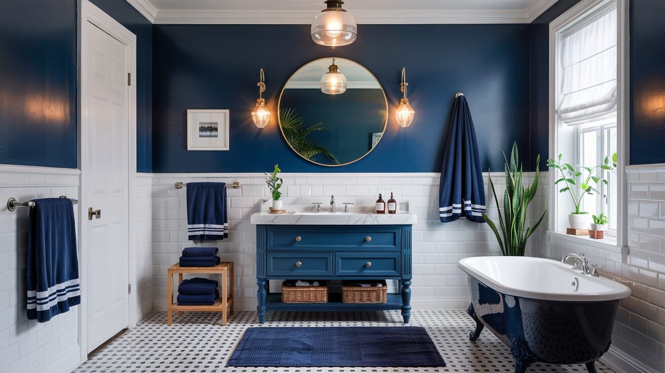 Navy Blue Bathroom Décor Ideas That’ll Make You Actually Want to Spend Time There